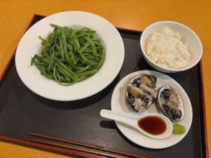 この鮑さん達は、中国の沿岸のどの辺りで採れたものだろうか、などと考えながらモグモグ。私達が呼ぶところの日本海側の味を堪能します。新鮮な貝類が大好きな私には嬉しい食材を発見。