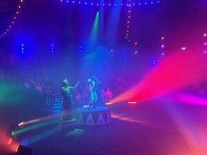 アールズコートの特設会場は、まさに映画の舞台となったサーカス小屋をリアルに再現したかのような作り込みで、のっけから観客を魅了します。場内は余り広くなく、距離の近い演者の皆さんとの双方向な一体感で盛り上がりまくり。